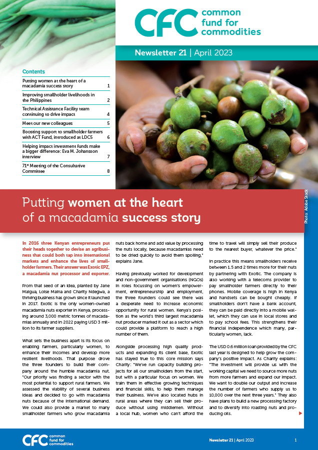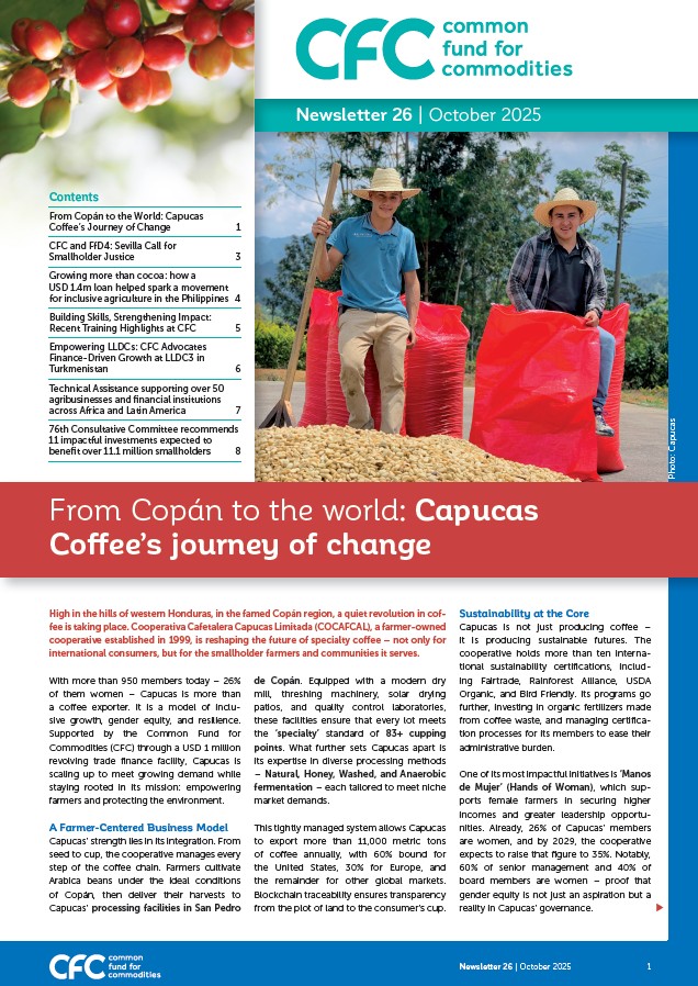 In 2024, the Common Fund for Commodities (CFC) faced unprecedented demand, with over 360 project proposals reflecting the aspirations of millions. Constrained by limited resources, we approved 18 projects, investing USD 135.56 million – directly benefiting 196,000 smallholders, supporting 540,000 farmers, and sustaining 11,800 jobs.
